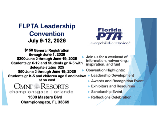 The annual convention is where important decisions are made for Florida PTA—it’s our highest decision-making body.
